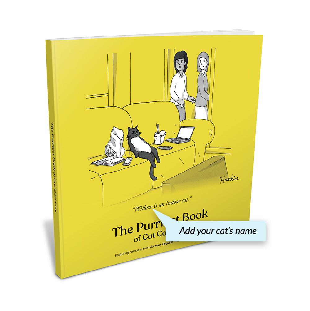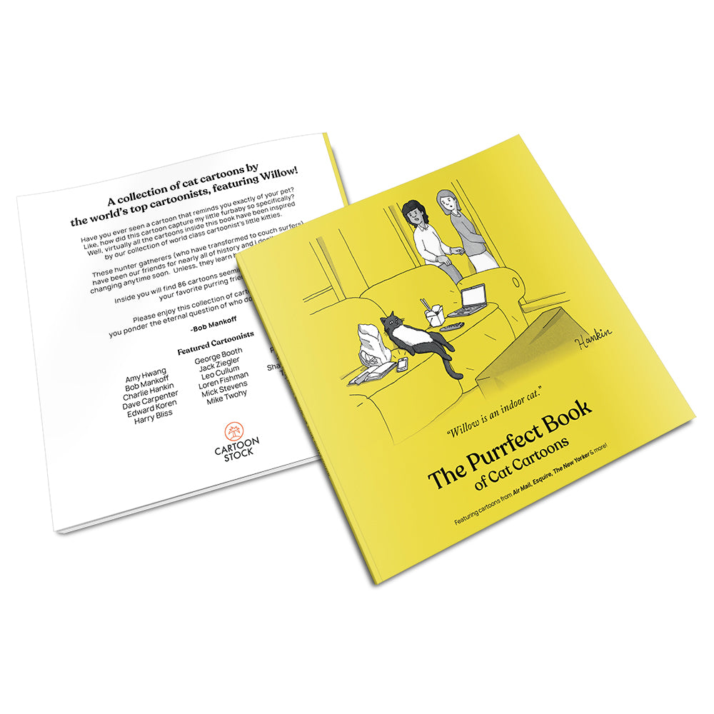 A collection of cat cartoons by the world’s top cartoonists featuring your cat on the cover, title page and 9 cartoons out of the book's 86 cat cartoons!